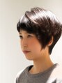 マッシュラインのショートボブ。短めバングで大人かわいい印象に。耳にかけたり、分け目を入れたり、アレンジすると、雰囲気が、変わりますよ。