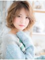 【スタイルは★ブックマーク★が便利】耳上からリップラインにかけてふわりと揺れる、浮遊感たっぷりのルーズな無造作ウェーブがポイント。斜めバングの毛先にウェーブがかかって扱いやすさも◎
