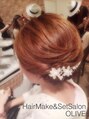#オレンジカラー#お団子アレンジ#クルクルパーマ