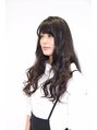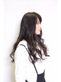 ダークブラウンのカラーで上品な艶と、骨格に似合わせたカットでバランスよく大きめのカールをわざと崩してうるっとしなやかな質感にするのがポイント。小顔に見せる前髪はおすすめですよ。