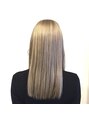合計ブリーチ4回くらいしています。ベースをブリーチで明るくして黄ばみをとり、薄く色をかぶせてミルキーグレージュに仕上げました。黄色味のない薄いベージュの中に ほんのりグレーがミックスされています。
