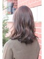 ナチュラルに清潔感溢れるミディアムスタイル。カットは表面にふんわり動きを表現するレイヤー入れています。Aラインじゃないひし形シルエットの鎖骨下ボブスタイルです。カラーは艶がてる透明感のベージュブラウンで、柔らかい印象を与えます。