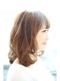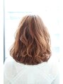 ゆるふわパーマでつくるミディカール!トップは根元中心にかけてふんわりさせ、それ以外は中間から毛先に動きをつければやわらかさのあるモテヘアーの完成♪カラーはハチ上にいれたハイライトとローライトカラーで立体感を演出。ワンカールとは違う雰囲気に♪