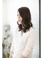 まとまりのあるカットをベースに、毛先に軽くカールをつけて大人な仕上がりに。カラーは8トーン『バイオレットアッシュ』で落ち着いた雰囲気に。バングを手ぐしでかき上げる度に色々な表情に変化します。