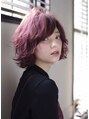 ワインレッドピンクデザインカラー×無造作ハネボブ×斜めバング/ホットペッパービューティー