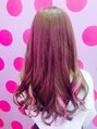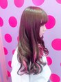 閃光ロードショーのモモネスチャン来てくれました。全体のカラーは、少し落ち着かせてピンクのエクステでインナーにメッシュを入れました。エクステだと色持ちがいいので、オススメです!