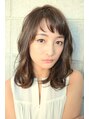 オシャレなオンザ眉毛の前髪とくしゃっとした柔らかいカールが愛らしいガーリースタイルです。ハイライトからーをプラスして透明感も出てシートな雰囲気に☆