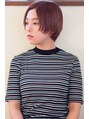 コンパクトなショートヘアです。巷でウワサのベリーピンクのカラーを。シンプルな形なので彩度の高いカラーで少し遊びゴコロをプラスして。