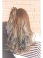 3Dグラデをした後、流行りのグレ-ジュにスモ-キ-アッシュをプラス。カットはロ-レイヤ-にして、程よく重さを残すことで可愛さUP!