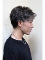 マッシュベースに中間に背にんぐを入れボリュームを抑え毛先は重めにして、弱めのパーマでランダムなカールをプラス。暗めなカラーで落ち着かせ男らしくも爽やかなスタイルを演出。