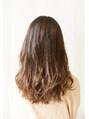 大人可愛くなれるゆるふわなセミディ。ブラウン系カラーで誰からも褒められるナチュラルな感色。パーマをかけて伸ばしかけでも簡単スタイリング。隙間のある前髪に切ることで自然な大人かわいい雰囲気に。前髪も似合わせカットでご相談を。