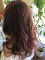 ピンクアッシュのゆるウェーブ♪ローレイヤーで毛先にだけ少しの軽さをつけて毛先に重ための印象に見せない可愛らしさと色気のあるスタイルです。ロングスタイルの方にはオススメです。