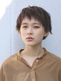 セミウェットなスタイリングで毛先に動きを出したショートスタイル。深めのアッシュカラーで透明感を合わせもつ絶妙な甘辛なバランスを♪