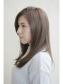 シンプルなナチュラルストレートスタイルです。カラーはアッシュベージュで透明感のある仕上がりに。スタイリングもねじって乾かすだけで簡単です♪