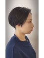 バングが長めの大人ショートボブ襟足はかりあげでスッキリめなので襟のある服やストールなどが合わせやすいです