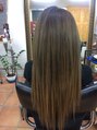 ブリーチでメッシュ後カラーをしてエクステを付けました。退色した後の色味を想定して、グラデーションでエクステの色をを選定してます。