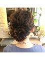 全体波巻きして、髪の毛をコサージュ風にまとめました。ロングの方にオススメです!