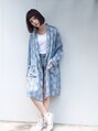 潔くパツンと切りそろえたボブです。カラーはブルージュで凛とした聡明さを。