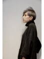 アウトラインを大胆に刈り込んだショートボブです。片サイドはワックスで無造作に動きをつけ、逆サイドはミニマルにスタイリングして、2つの質感を存在させています。マスキュリンなスタイルを好む方にオススメのモードでアヴァンギャルドな髪型です。