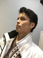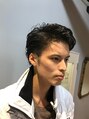 男らしく前髪を立ち上げた横分けパーマスタイルです。遊びも入れつつ硬くなり過ぎない様に。スパイラル巻きでルーズさを出してみました。