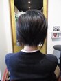 サイドを長めに残してワンポイント!全体的にタイトに仕上げました。頭が小さく丸く見えるスタイルです。首回りはスッキリしたいが顔周りは短くし過ぎずワンポイントほしい方、ボリューム出したくない方にオススメです。