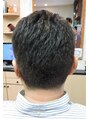 フロント、トップはクセを生かして自然に流せる長さに。周りは強いラインになりすぎないようにハサミでカットしてやわらかいイメージに。カラーはほんのり明るいベージュ系で大人で優しくやわらかい印象に。