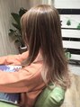 全体にハイライトを施し、アッシュベージュカラーにしてます。ローレイヤーで巻きやすくカットしてます、