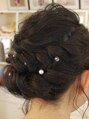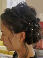 波ウェーブをし、トップとサイドにくるりんぱを使ったアレンジスタイルです。肩につくかつかないかくらいの長さでもできるスタイルです♪