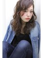 目元にかかる前髪に、毛先を重めに残して中間からトップにかけて動きが出るように計算されたカットを施し、ランダムなカールのパーマをあてたセミロングスタイル★パーマではなく、26mmアイロンでMIXに巻いて毛先をほぐしながらスタイリングでも◎