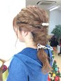 波ウェーブとくるりんぱを使て大人なダウンスタイルです!!毛先に、白っいレザーのリボンを使って更に大人感を演出☆