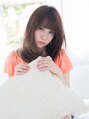 重ための前髪でヤングテイストに。毛先のカールを大胆に作り込み可愛さを全面的に出した 小悪魔チックなキュートスタイルです顔周りの毛束を外巻きに流せば大人スタイルに! 可愛くもカッコ良くも魅せられる万能ヘアです。