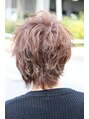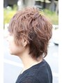 ボリュームを落とすために、襟足とサイドを大胆にツーブロにし、エアリー感は出しても、パサつきが出ない様、部分的にセニング。カラーは流行りのブルーで完全に赤みを消して男らしさとクール感をUP!!