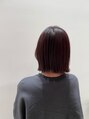 ベーシックなAラインのボブスタイルです!襟足部分は少しグラデーションカットでつなぎ頭のシルエットが綺麗に見える様カット☆カラーはブラウンベージュにローズをチョイ足ししたオリジナルカラー☆重たく見えやすいカットなので少し明るめを強調しました◎