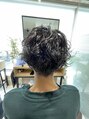 ベースはワンレンでカットし、トップにハイレイヤーを入れた動きのあるスタイル。中間から根元にかけてパーマでウェーブ感をだし、さらにランダムな動きをプラス。アッシュ系のカラーがクールなショートスタイル【EARTH東神奈川店】