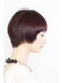 ダーク系のカラーにレッドピンク系のカラーで、重ための前髪にベストマッチングなカラーリング。ナチュラルでモードな雰囲気でオシャレに決まります。〈銀座/傷まないカラー/白髪染め/頭皮ケア〉【銀座】