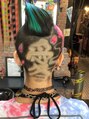 バリカンアート和柄、桜、愛、です。バリカンで柄を削った後ヘアカラーしてます。モヒカン部分はエメラルドブルー。