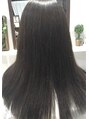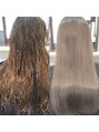 縮毛矯正とカラーで毛先はハイダメージ毛でした。カラーでトーンダウンして超音波アイロントリートメントで施術した後に撮らしてもらった写真です♪
