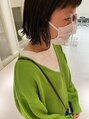 オン眉な前髪がかわいいスタイル。長さをあごラインにしたミニボブ。ちょっとアイロンで外ハネしたり自然に仕上げるのがポイント。ナチュラルオイルでボリュームを抑えるとバランス◎。【EARTH鶴岡】