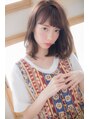 今人気のミディアムのニュアンスパーマ♪短めの斜めバングに緩くカールした毛先が相性バツグンです!肩下のミディアムパーマはハネるのも解消してくれるスタイリング簡単スタイルです(^^)/お初めての方もお気軽にご指名下さい♪