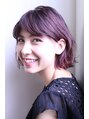 インナーカラーのハイライトにチェリーバイオレット。重めぱつんボブ。耳にかけるとカラーがしっかり見えてエッジのあるスタイルに。ナチュラルもビビットもハイライトのデザインで変えられます♪ご相談ください♪
