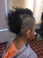 激しく回りを刈り上げた、モヒカン風ボウズスタイル。
