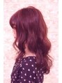 今流行りのベリーピンクで女の子らしさ増し♪バングは重ためフルバング顔周りは短くカットしてあるので沢山巻かなくてもカールがきれいに見えます。