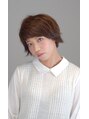外ハネさせてショートボブスタイル。顔周りを外にハネさすことで丸さがですぎずにスッキリさわやかなスタイルになります。