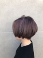 ブリーチ後にピンクパープルのカラーを入れてます。根元はダークアッシュを入れグラデーションに仕上げました。カットは前下がりのショートスタイルです。