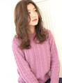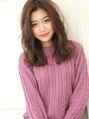 コテで柔らかく巻いてラフにゆらぐ、鎖骨下の毛先ぶ厚めニュアンスセミディ。顔周りには、わずかなレイヤーで絶妙な小顔効果。頬レングスバングで、センターパートはもちろん、かきあげ大人スタイルも、シースルーフェミニンも叶えるリバーシブルバングが◎