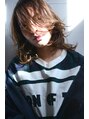 起きたてみたいな質感が可愛い、mediumのレイヤースタイル。肩に当たってハネやすい長さも、あえて毛先を遊ばせてスタイリングが◎。日の光に映えるブルージュの色味がオススメ。