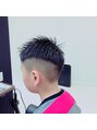 サイドから襟足は刈込み、フロントとトップは少し長さを残し流したスタイルになります。