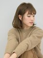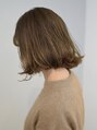 肩ラインのワンレンボブベース。カラーはイルミナカラーのグリーン系で重すぎない柔らかさをプラス。32ミリのアイロンでワンカール巻いて仕上げます。
