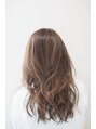 顔まわりにハイライトを入れてかき上げた時に自然な動きがでますグレージュ系の淡い色でもコントラストがでますよ!巻き髪でちらっともえるのがかわいい♪