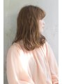 伸ばしかけの方にもぴったりな、フェミニンカジュアルなふわふわミディアムです。中間から毛先にかけて大きめのカールをつけて、ラフにくずしました。ハニーベージュカラーで透明感アップ。
